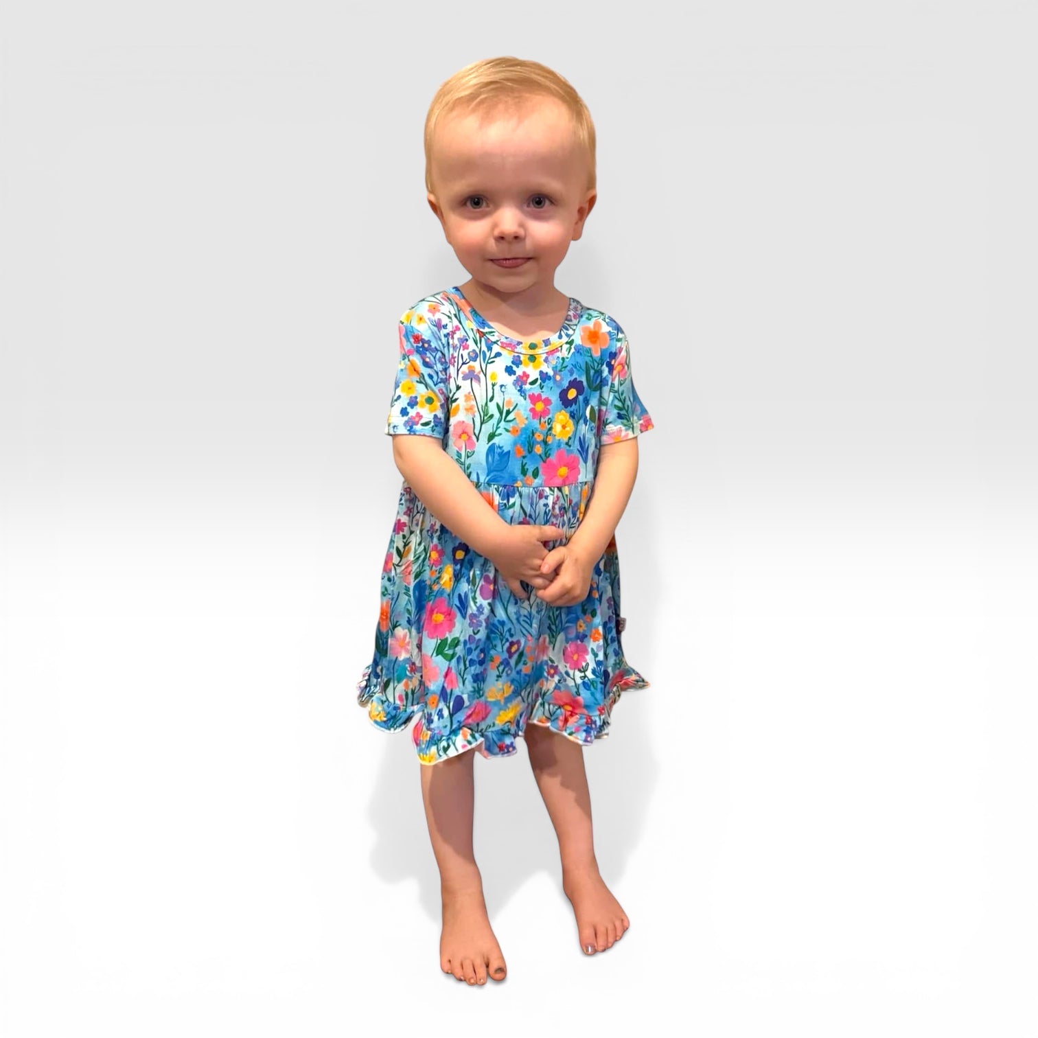 • Full twirl skirt perfect for spinning • 0–3M to 18–24M: built-in snap bodysuit for easy diaper changes • 2T and up: hidden pockets + built-in modesty panel for comfortable play • Soft, breathable bamboo fabric • Lightweight and comfortable for all-day wear • Designed in small batches