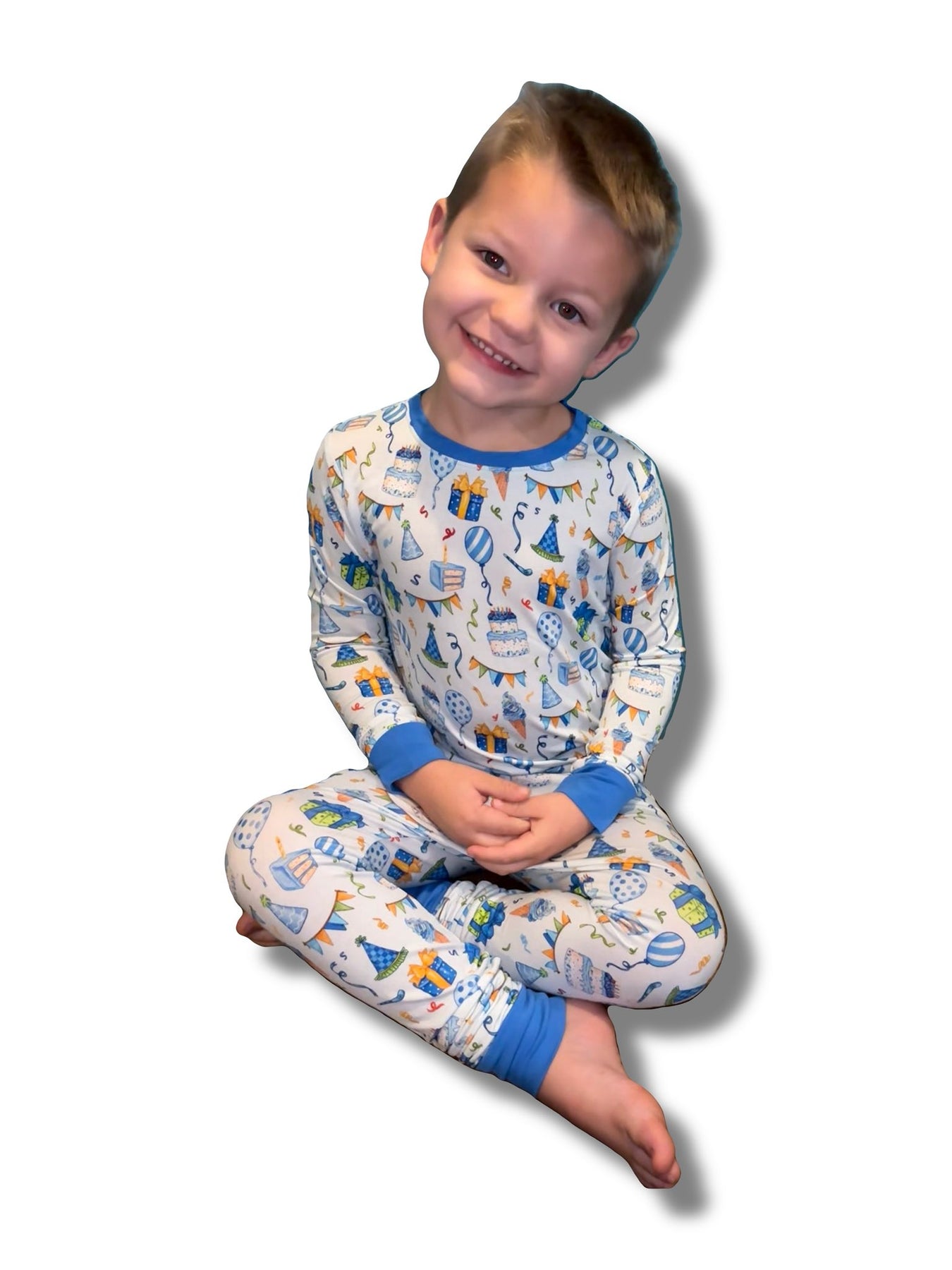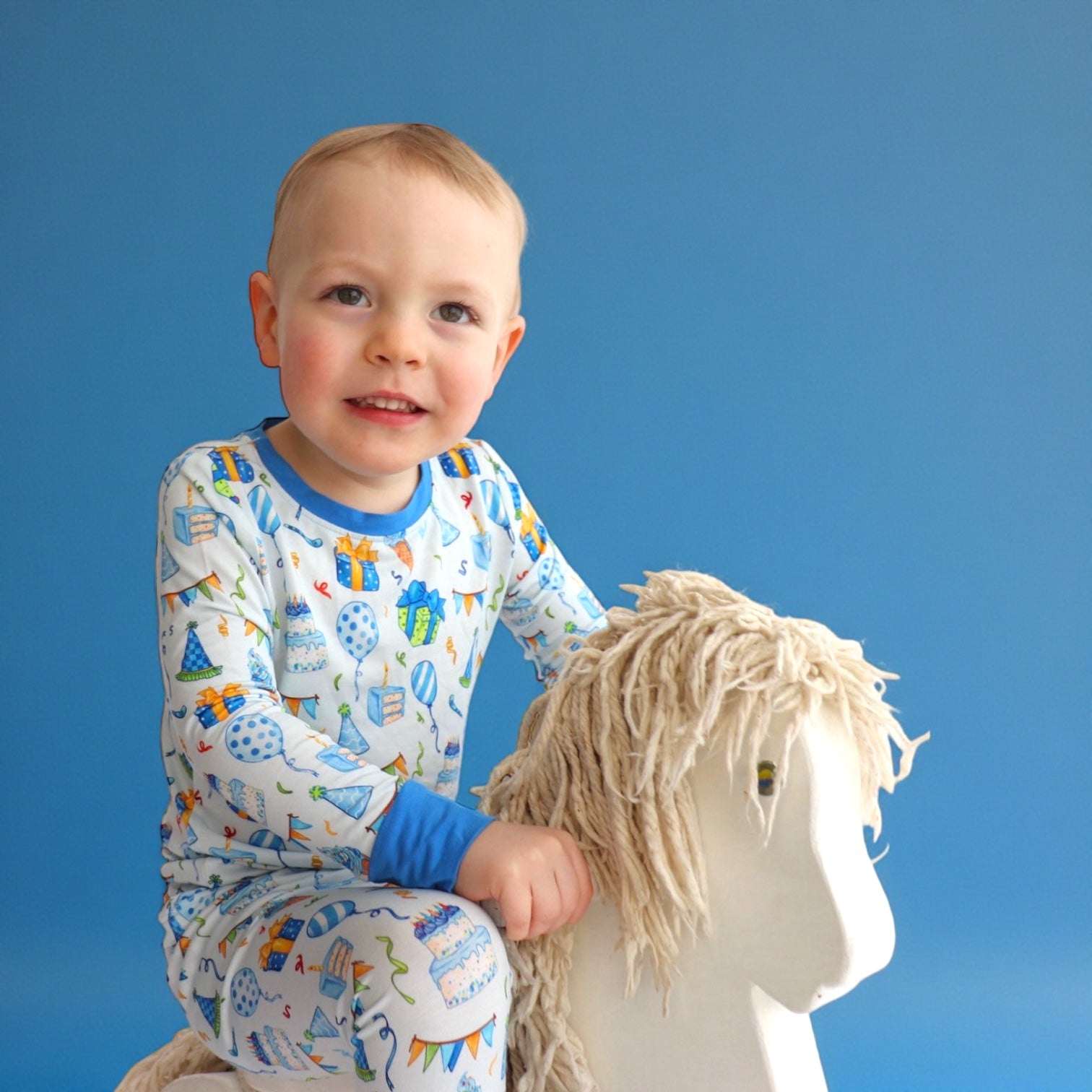 Our Brooksees Birthday Bash long-sleeve two-piece pajamas are designed for cozy celebrations and everyday comfort.