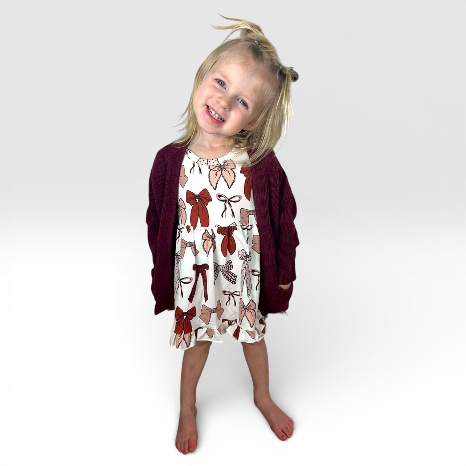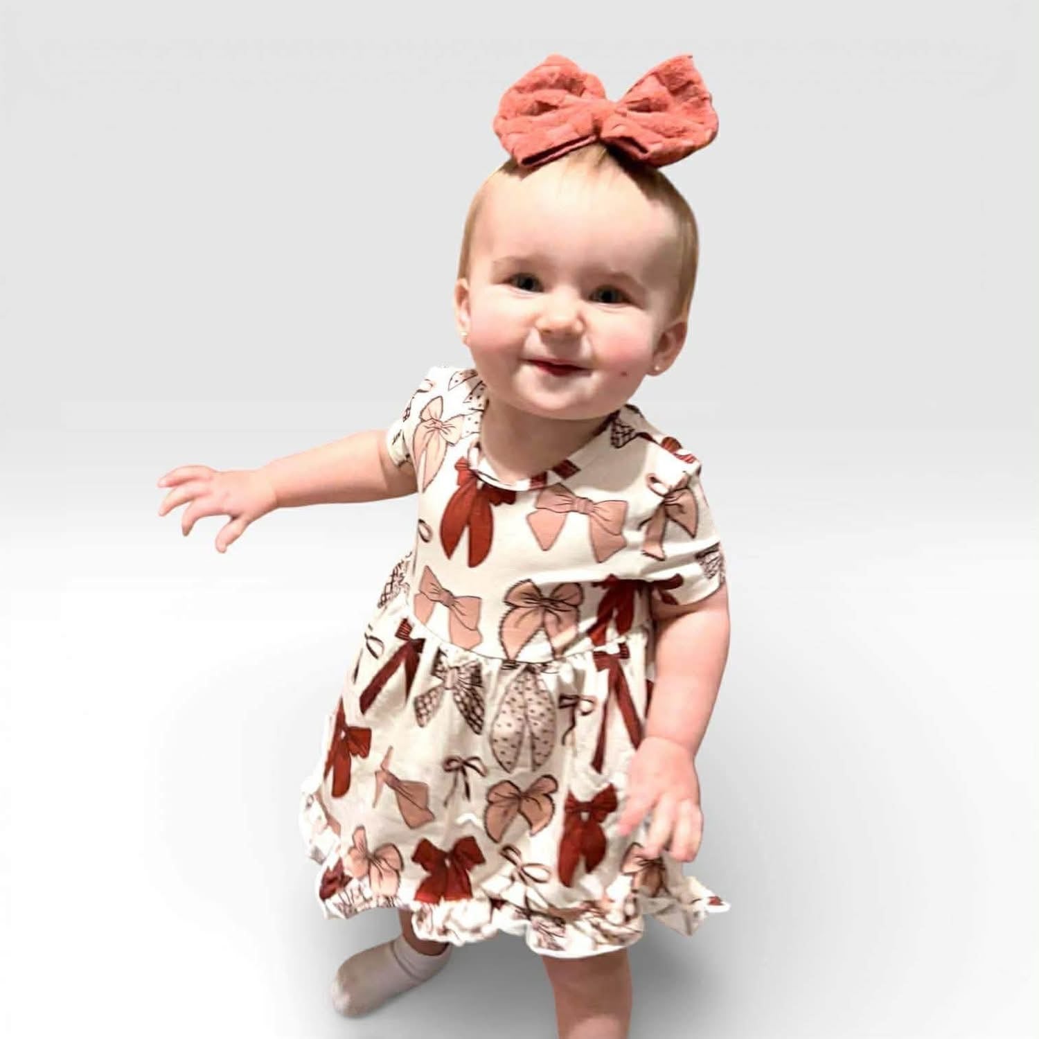 Our Knot Your Average Neutral Dress features a luxe cream and mocha bow print designed to elevate everyday dressing. This isn’t your basic beige — it’s soft, sophisticated, and effortlessly styled.
