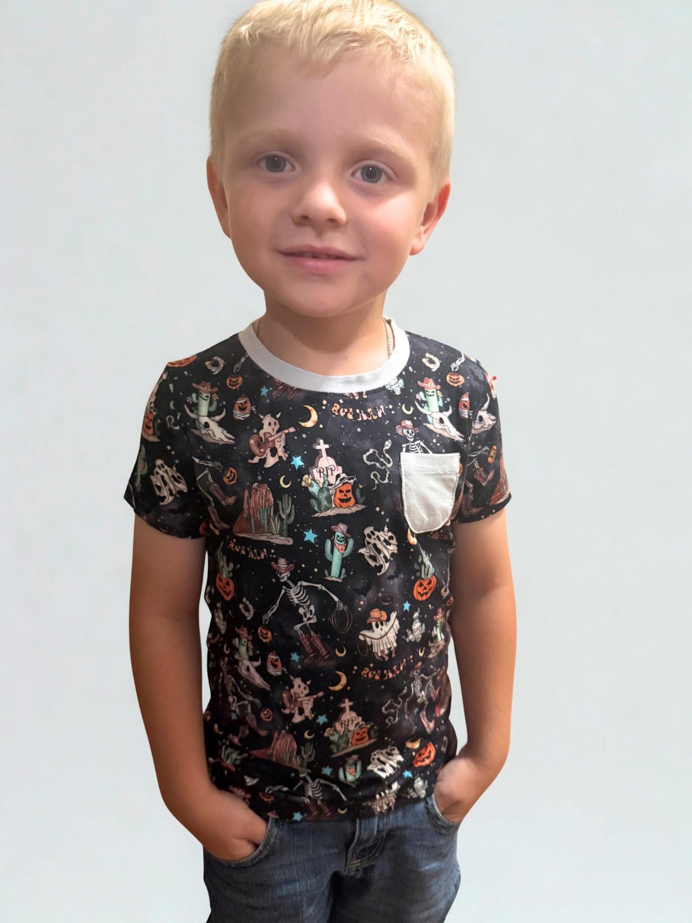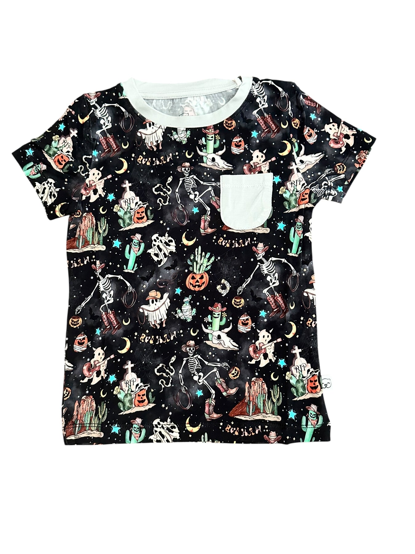 Round up some Halloween style with our Howdy Boo Short Sleeve Pocket Tee. Made with bamboo fabric that’s lightweight, cool, and incredibly soft, this tee features a festive Western ghost-and-pumpkin design. Perfect for everyday wear or pairing with Brooksees joggers and leggings.