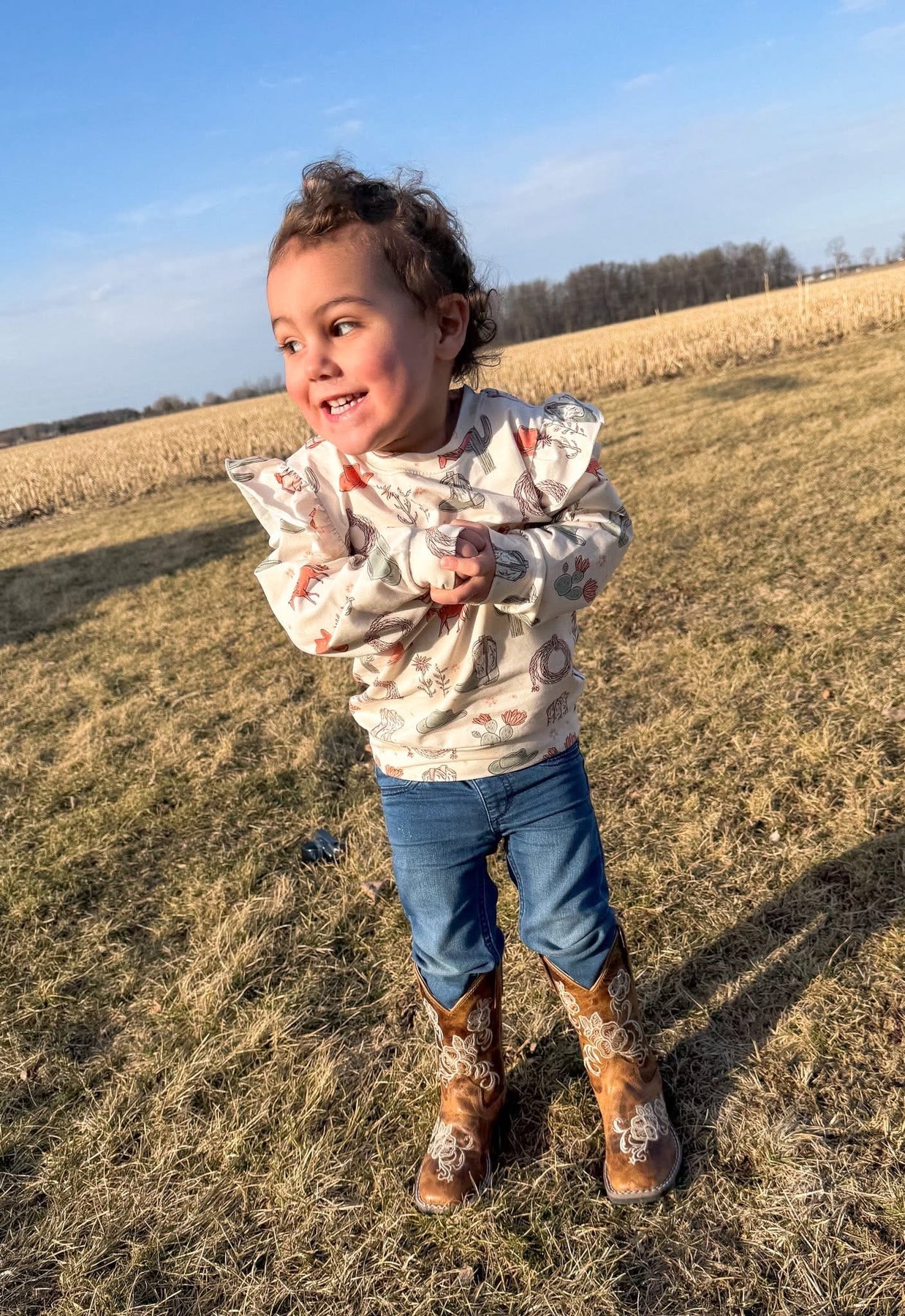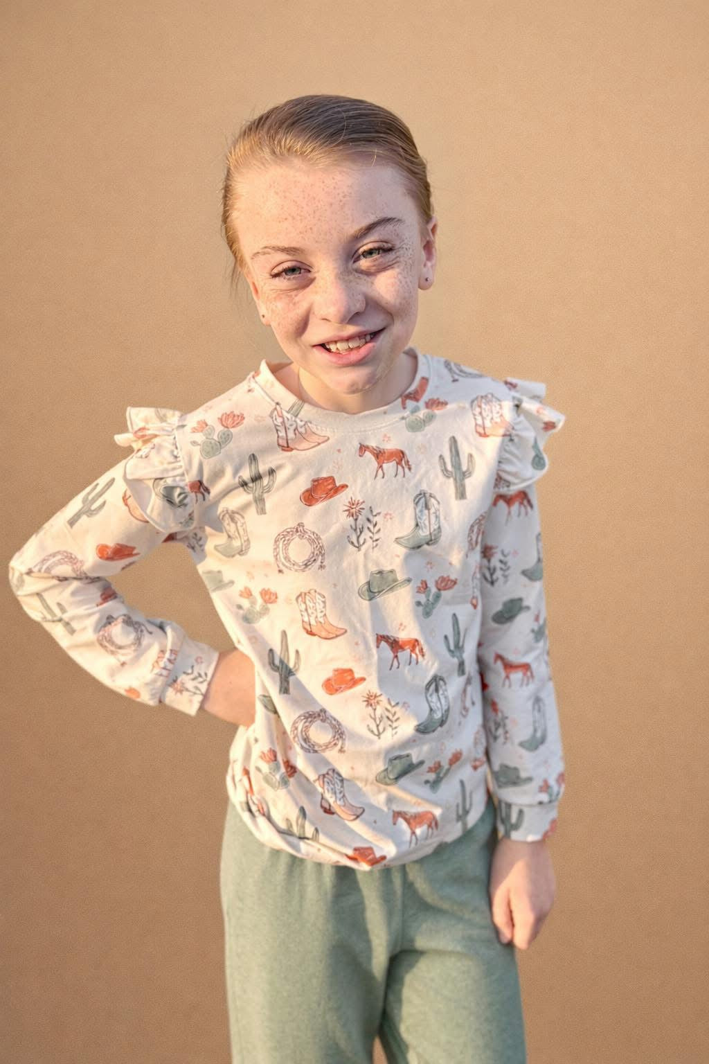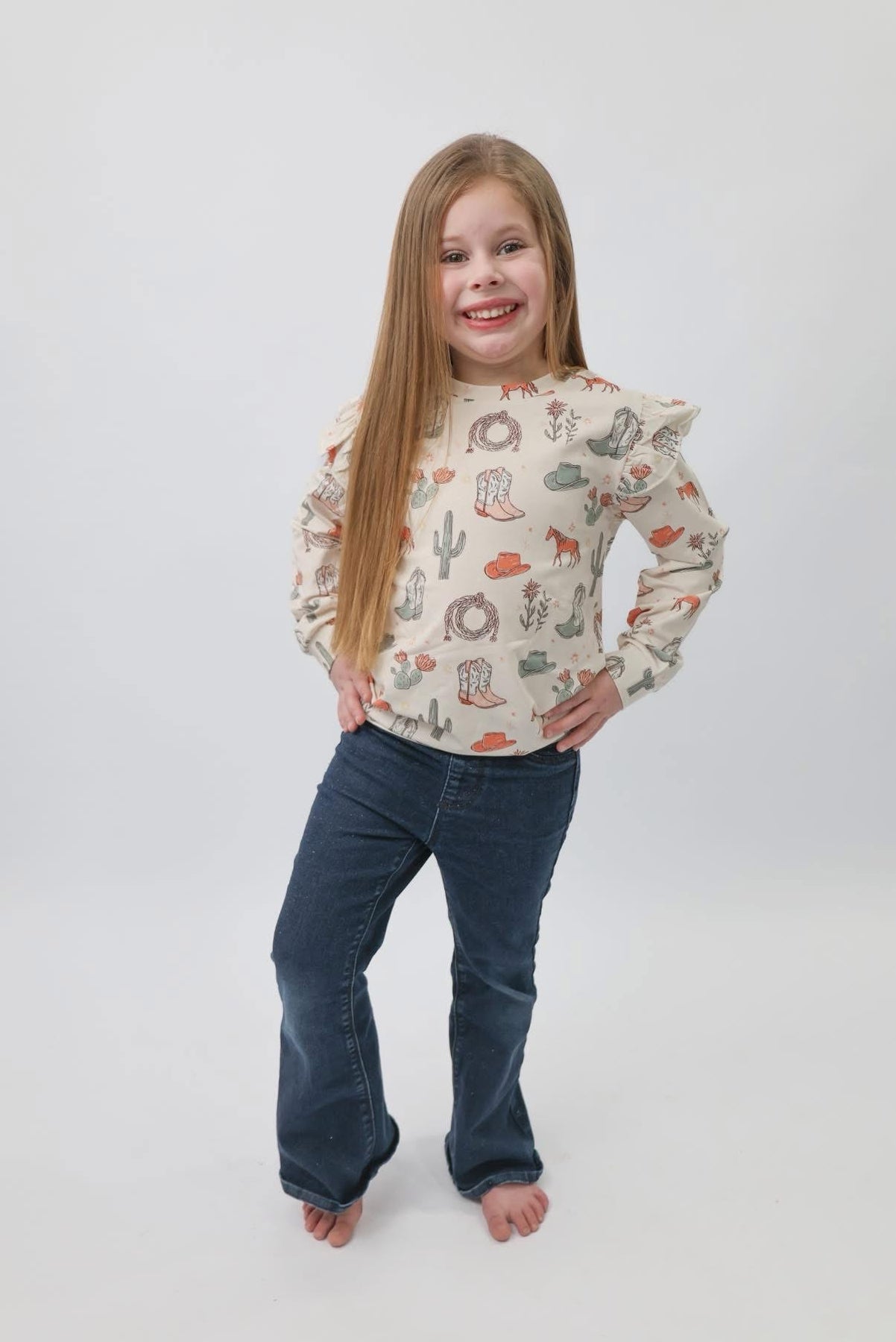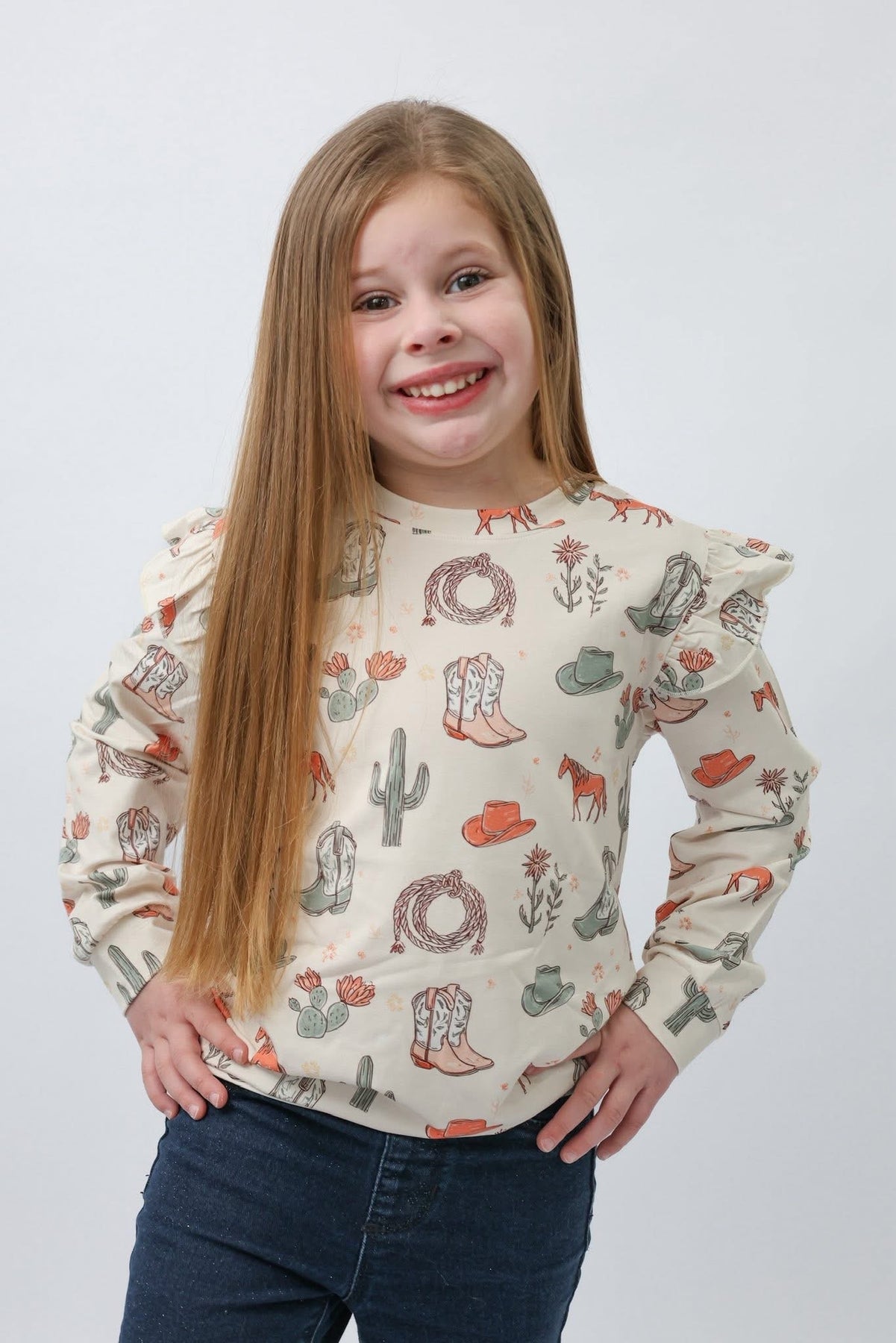 Meet Wildflower Wrangler, a western-inspired print full of charm and personality. With soft western vibes and playful details, this sweatshirt is perfect for kids who love a little country flair in their everyday style.