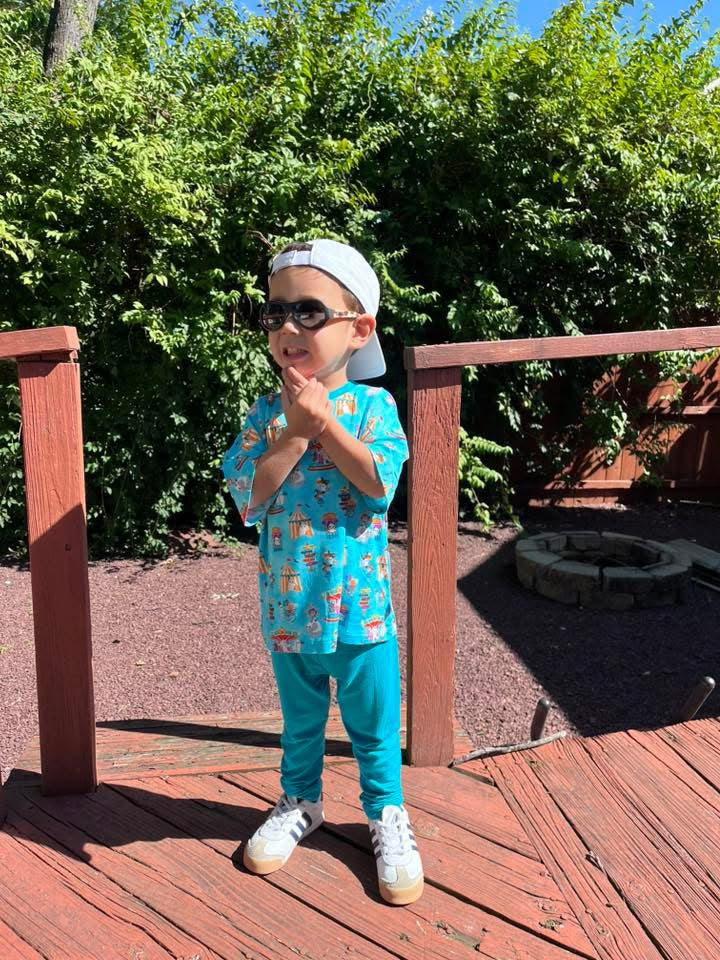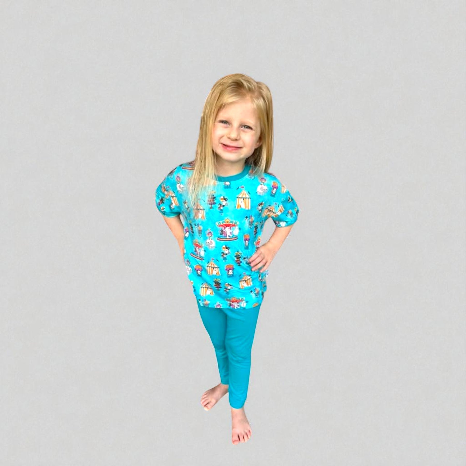 Our Spooktacular Circus Oversized Tee with Leggings set is a comfy classic with a spooky twist. The relaxed fit tee pairs with matching leggings in our playful Halloween circus print, creating the perfect outfit for lounging, school days, or family festivities. Soft, stretchy, and stylish—this set makes Halloween even more fun.